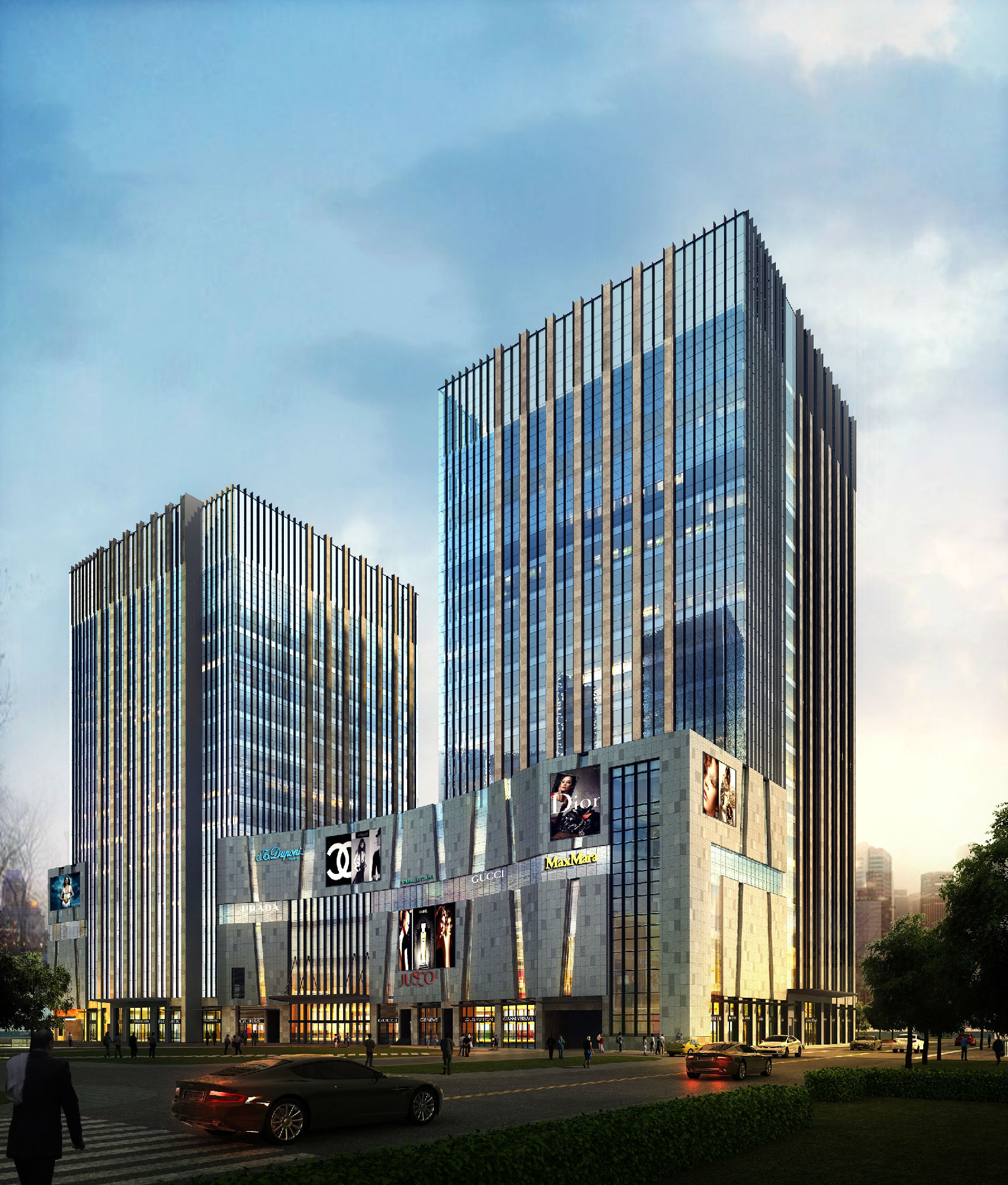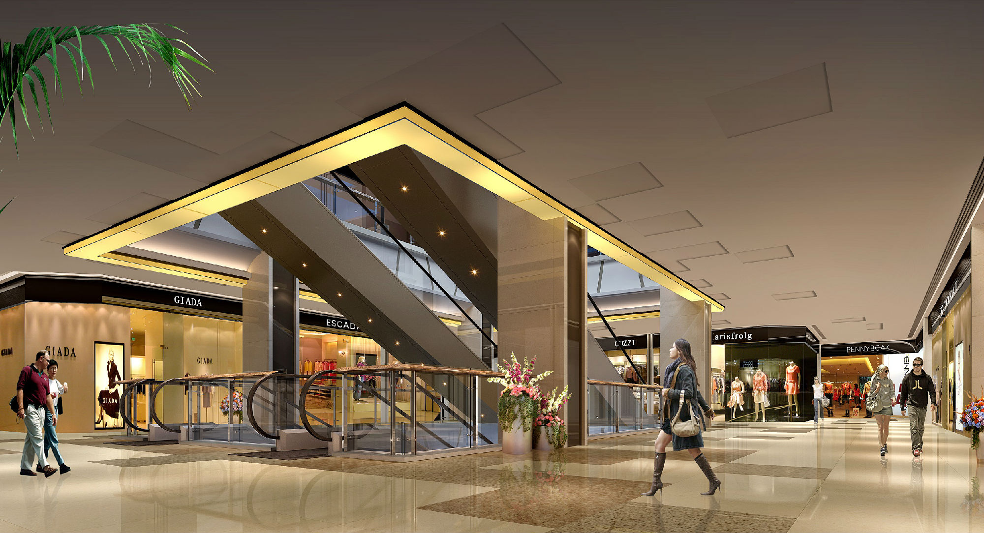 落日余暉與GUCCI金碧輝煌的門面相映襯,增添了建筑的華貴氣息,讓人不禁流連于新區的繁華;商場內部明凈而寬敞,樓層商鋪分布合理,為顧客帶來一個能充分滿足視覺享受與購物欲望的豪華商業空間。