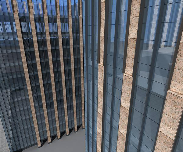 本項目為集辦公、商業等功能于一體的城市綜合體,總建筑面積達11萬平方米,由三層地下室、五層商業裙房和上部的兩座高層塔樓組成。海湖新區財富廣場一至五層為商場,六層以上A、B塔樓為辦公室。
