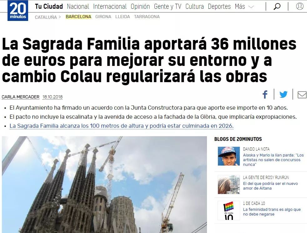 在2018年的新聞曝光,圣家堂建筑管理委員會承諾將在十年內(nèi)補償市政府3600萬歐元以換取建筑許可,使建筑合法化。所以嚴(yán)格來說其實也并不算是罰款,而是協(xié)議。