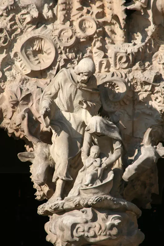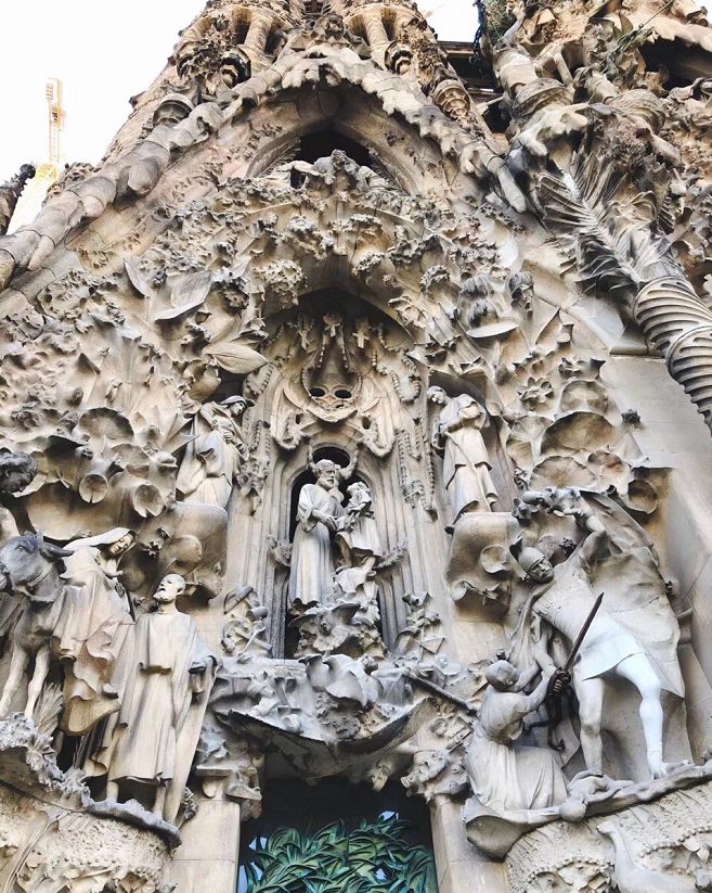 高迪在世完成了誕生立面,門口雕刻主要圍繞圣家族成員和驢,牛,東方三賢,以及牧羊人。雕刻做工之復(fù)雜精細,要細細觀看才能理解其中的含義。