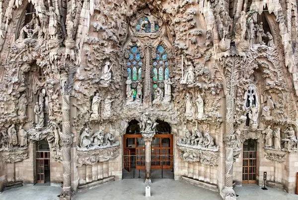 高迪將教堂的三個立面,分別以隱喻的手法設(shè)計成象征耶穌一生的三個階段:誕生、受難與復(fù)活。三個立面各有設(shè)計理念:耶穌誕生、普降福音、基督受難。