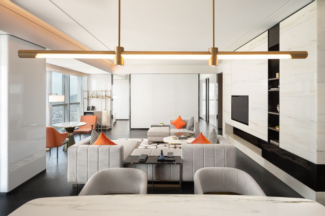 設計師以“見山是山,見水是水”的哲思,將巴蜀風物、江流韻律與都市肌理悄然融合,營造出“身在塵囂外,心歸山水間”的棲居意境。