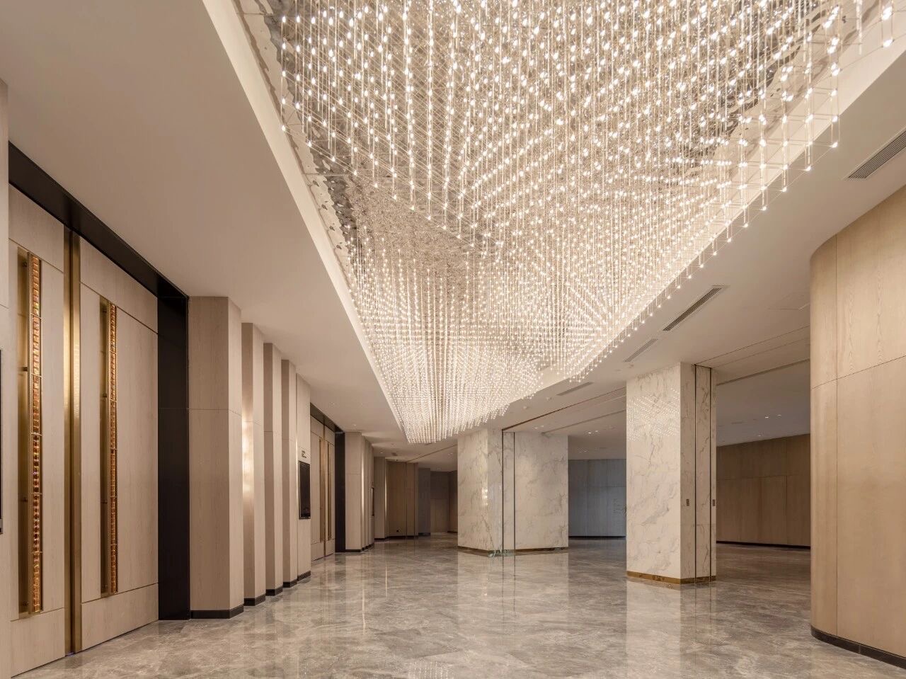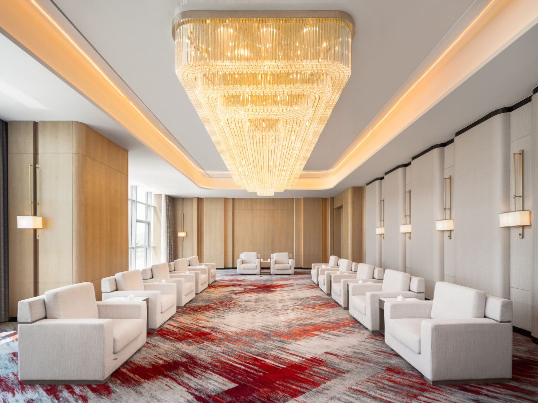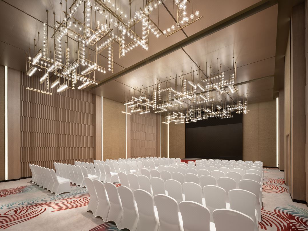 2000平方米無柱宴會廳,天花以流動水紋為肌理,燈光如星河流轉,營造出開闊而不失溫情的空間氛圍。