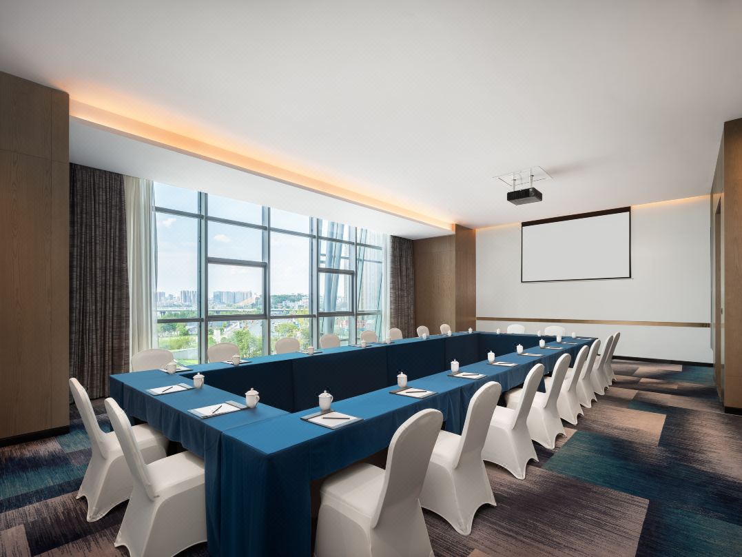 會議室位于安靜區域,空間簡潔通透,以淺木色與灰調為主,避免視覺干擾。