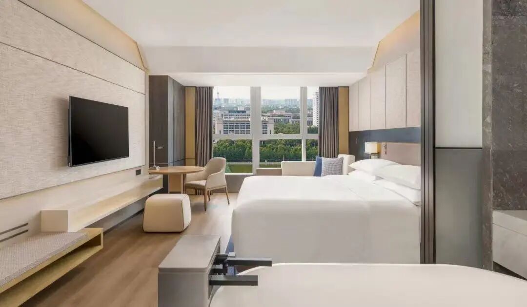 298間客房均配備闊景落地玻璃窗,可飽覽開元湖秀麗湖景與洛陽城市景觀。