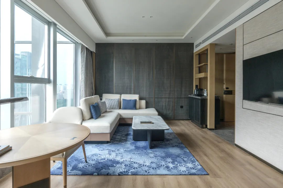 室內設計在保留萬豪經典現代風格的基礎上,巧妙融入唐宋洛陽園林的藝術精髓,以原木、竹編、棉麻等天然材質,營造出"靜照心源"的輕奢禪意空間。